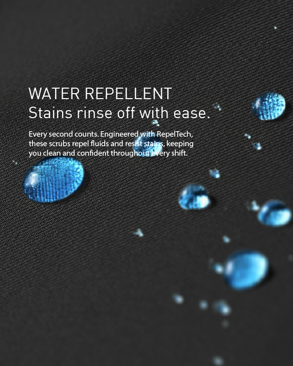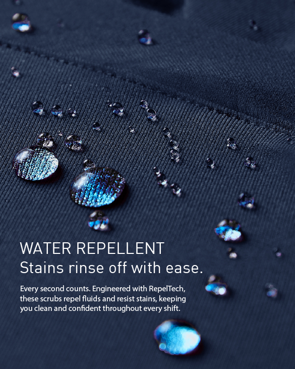 Every second counts. Engineered with RepelTech, these scrubs repel fluids and resist stains, keeping you clean and confident throughout every shift.