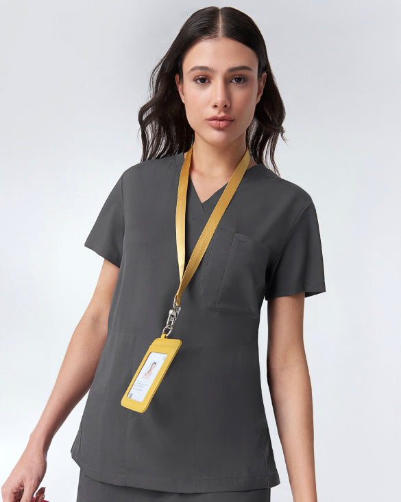 Fabric pulls sweat away from the skin, disperses it quickly, and keeps scrubs cool, dry, and breathable all shift long.