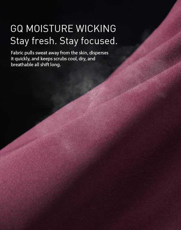 Fabric pulls sweat away from the skin, disperses it quickly, and keeps scrubs cool, dry, and breathable all shift long.